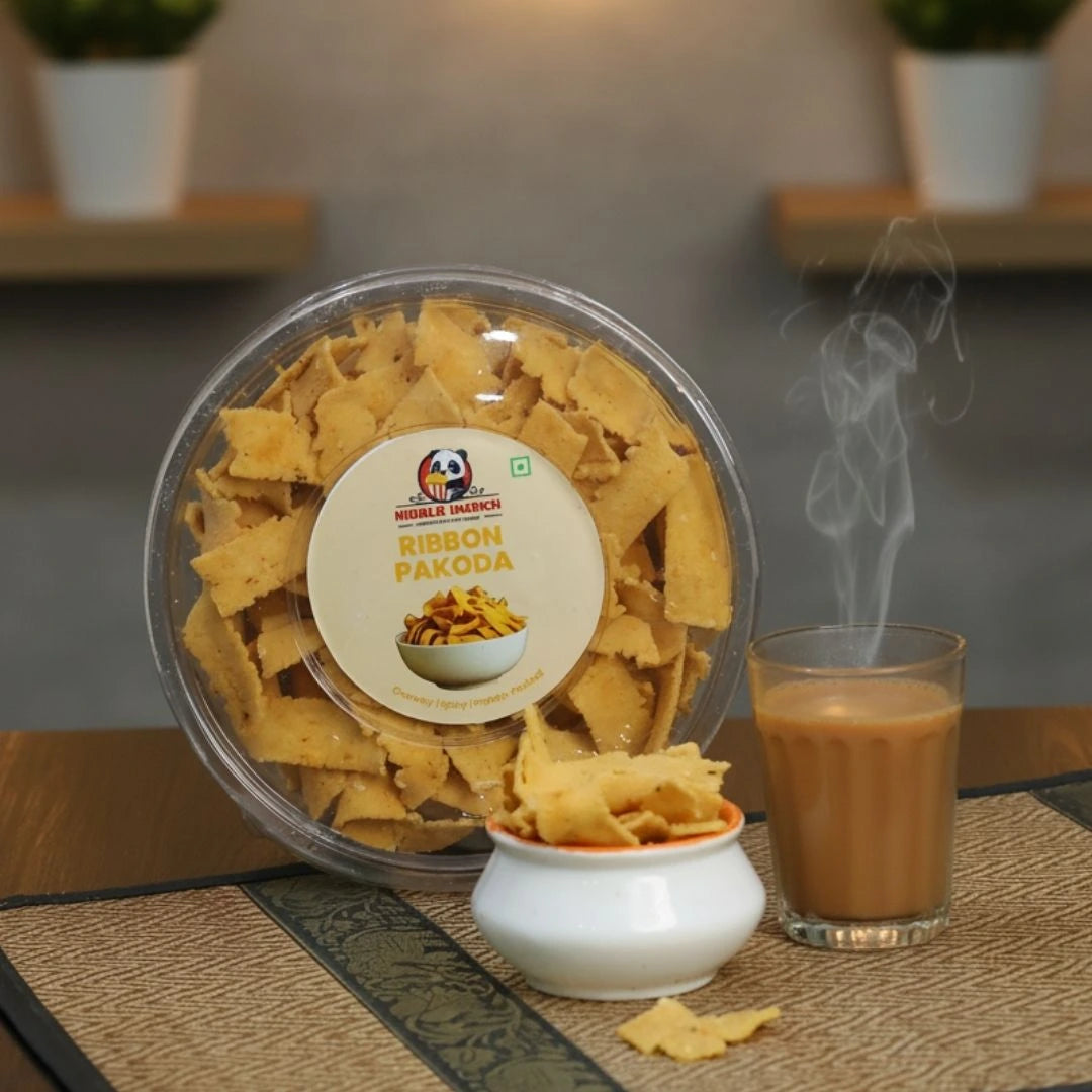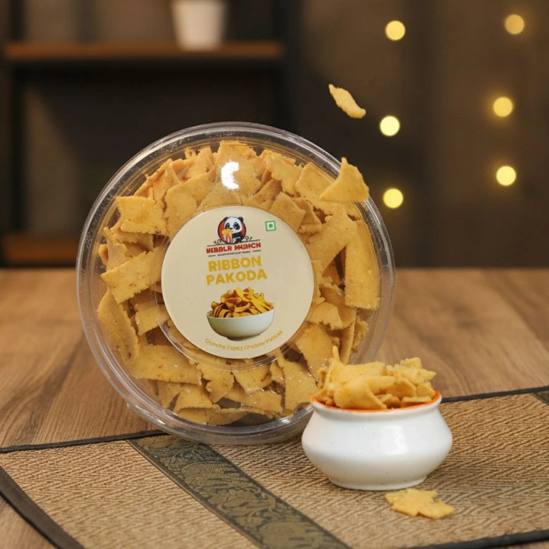 Ribbon Pakoda Crunchy, Festive & Flavorful n n n nTraditional South Indian Snack Made with rice flour, besan, and mild spices. n n nCrispy & Tasty Ribbon-like shape with the perfect balance of salt and spice. n n nFestive Favorite A must-have during Diwali and other celebrations. n n nAnytime Delight Light, crunchy, and perfect for tea-time or casual munching. n n