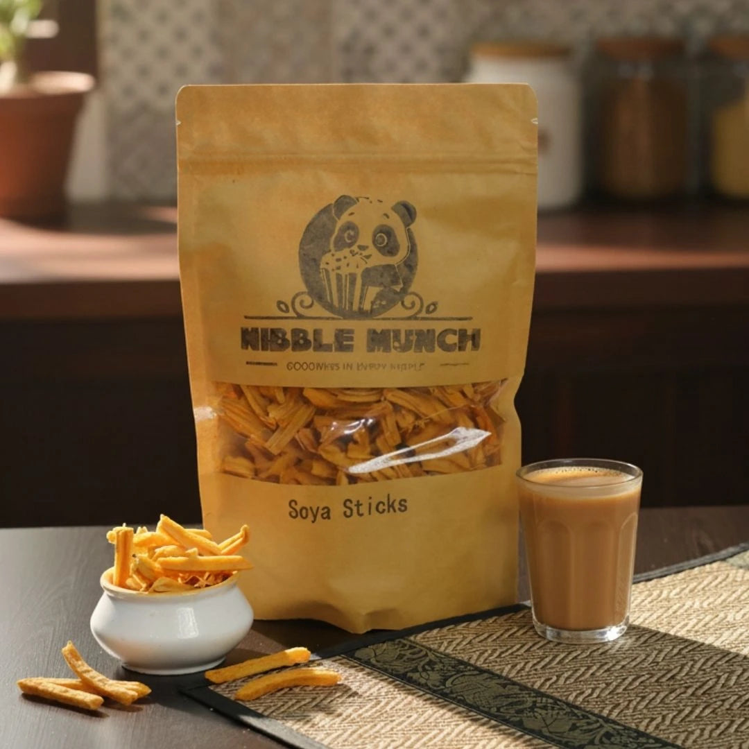 Soya Sticks Crunchy, Protein-Packed Munchies n n n nWholesome Goodness Made from soya flour, rich in plant-based protein. n n nCrispy & Flavorful Seasoned with a tempting blend of Indian spices. n n nAnytime Snack Perfect with evening tea or as a midnight craving fix. n n nLight Yet Filling A guilt-free treat that balances taste and health. n n